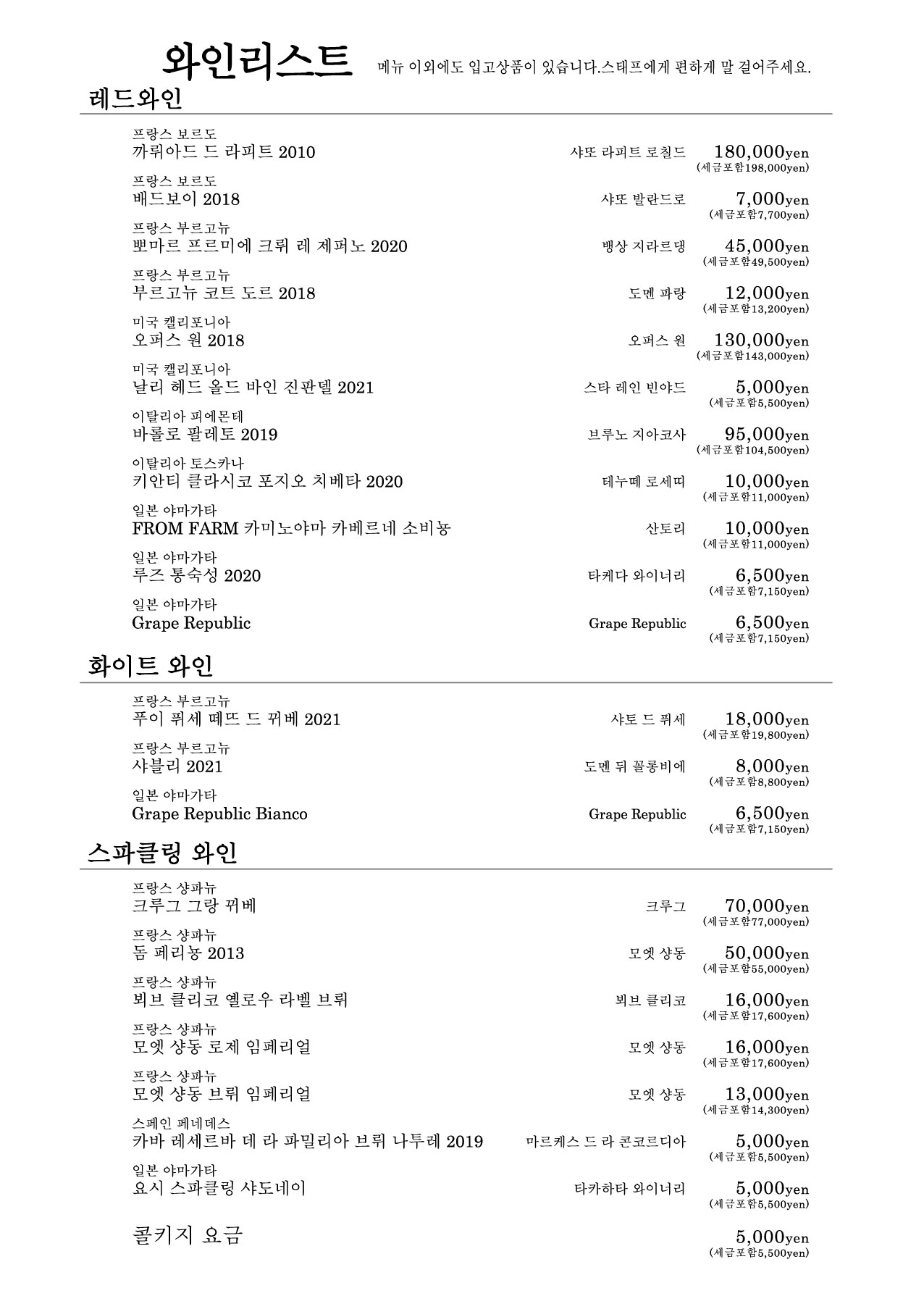 お品書き